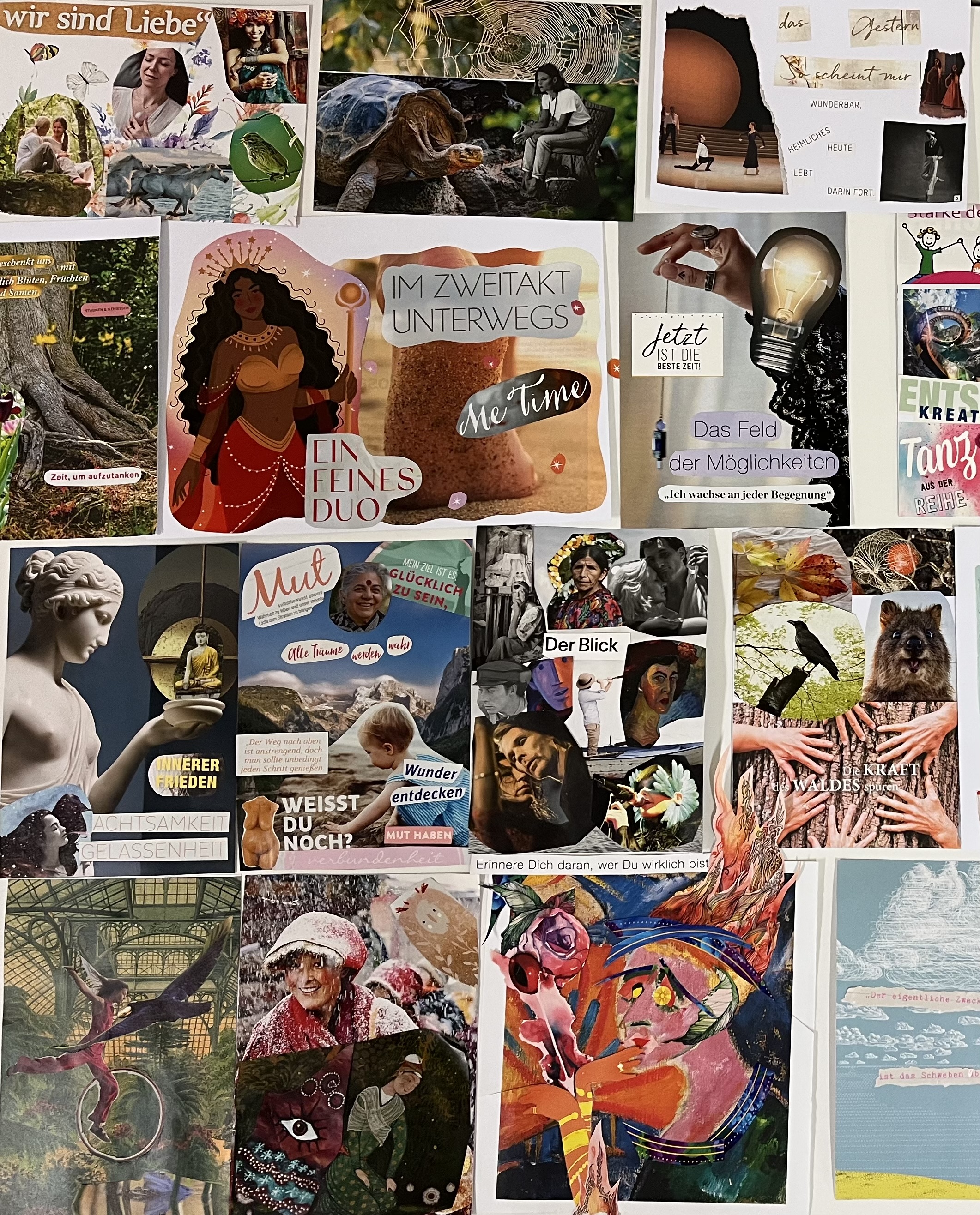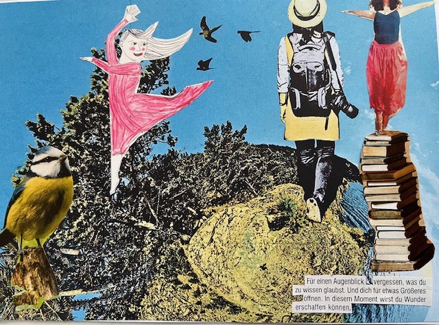 Wir spielen mit Bildern aus Zeitschriften und kommen dabei in Kontakt mit unseren inneren Bildern, unseren Selbstheilungskräften und Ressourcen.