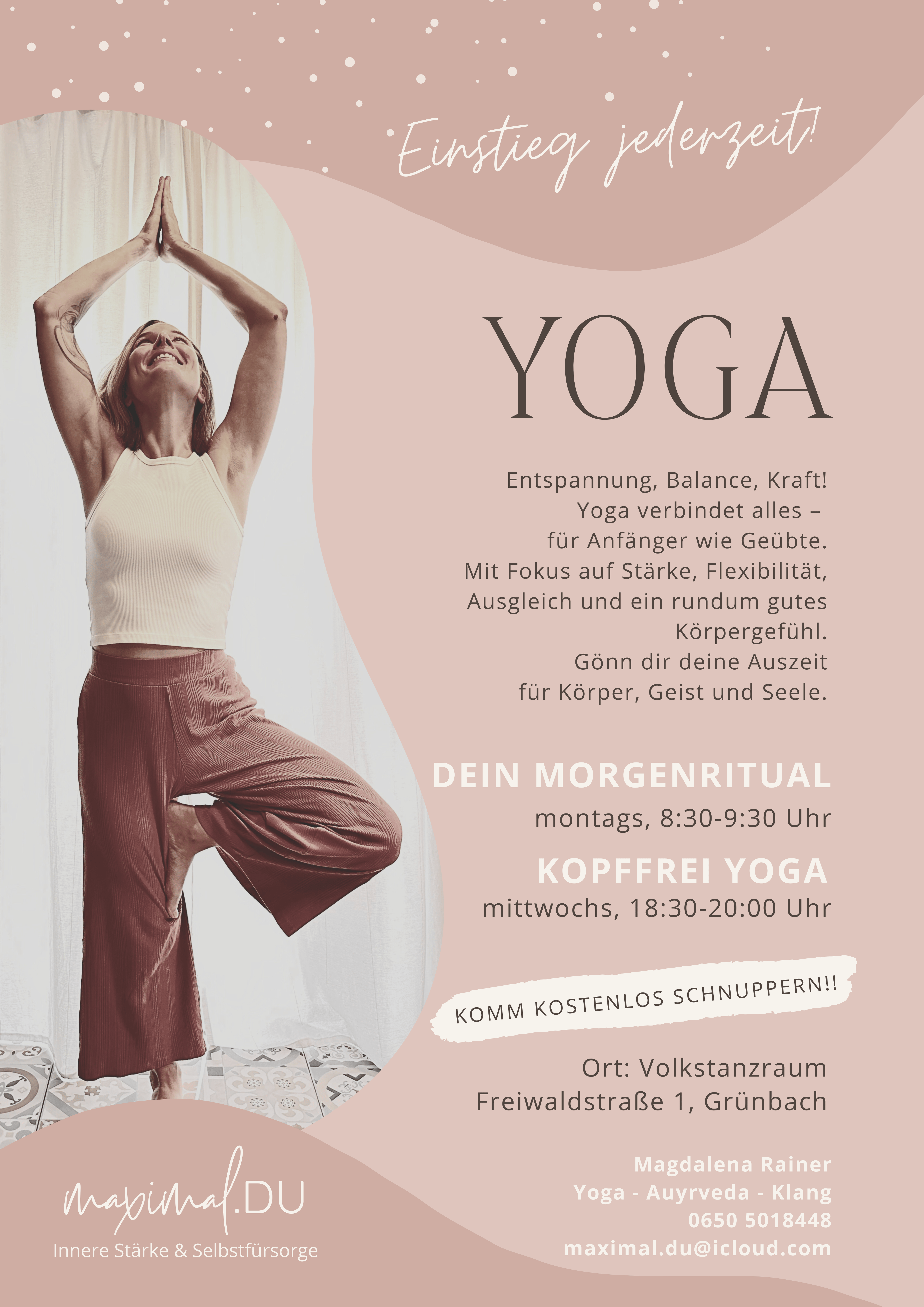 In meinem fortlaufenden Yogakurs am Mittwochabend kannst du deinen Kopf ausschalten und ganz bei dir in deinem Körper ankommen.