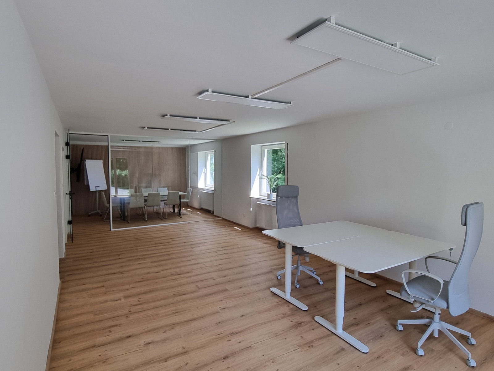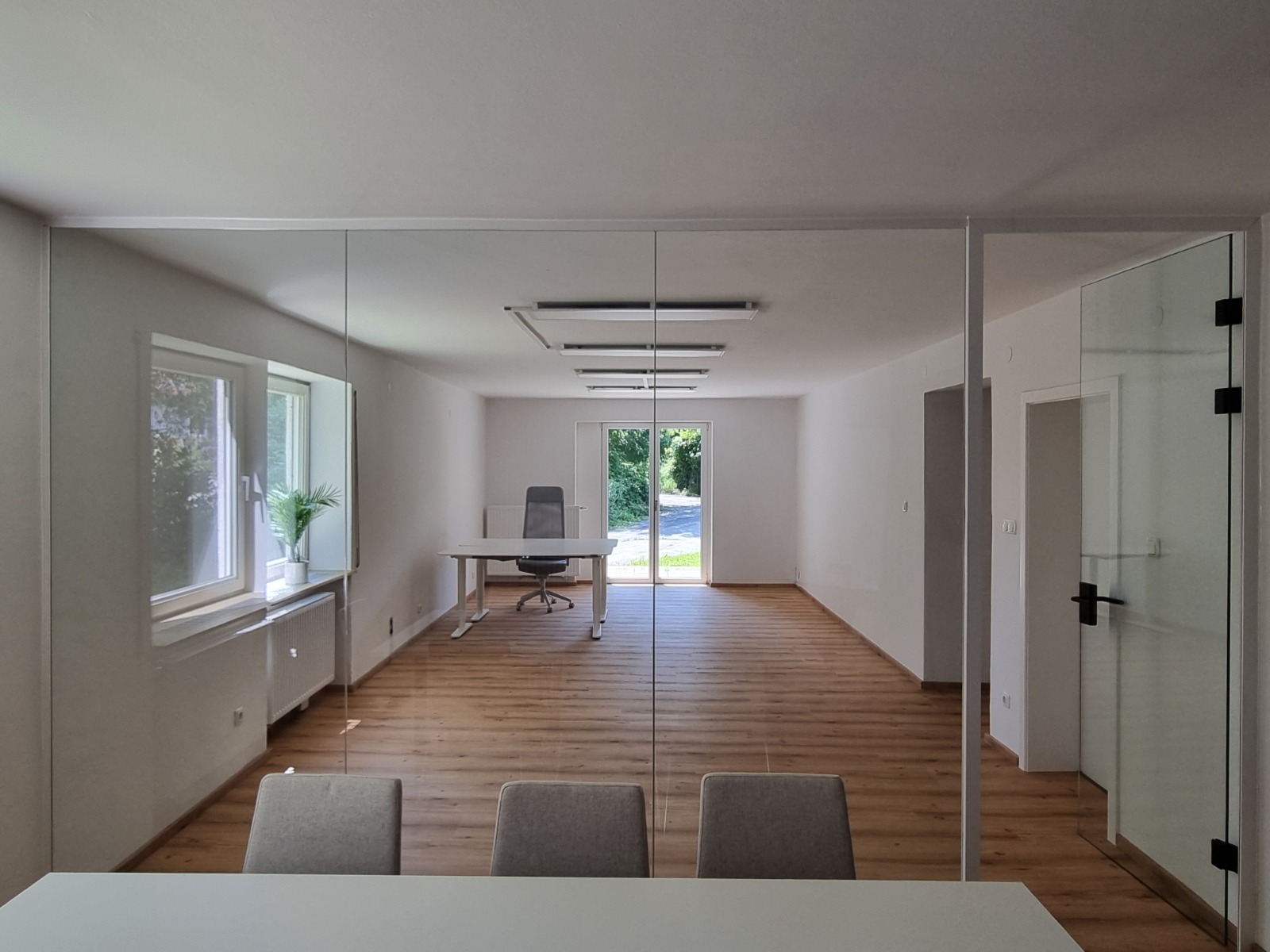 Unser großer, lichtdurchfluteter Raum direkt neben der Gusenbütte bietet den perfekten Ort für neue Gedanken und freie Entfaltung. Ob konzentriertes Arbeiten im Büro oder eine entspannte Yoga-Session – die großzügige Doppelflügeltür öffnet sich zur Terrasse und lässt Innen- und Außenraum harmonisch ineinanderfließen. Ein Ort, der Weite schafft – im Raum und im Kopf.